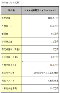 - コスモ城東野江ロイヤルフォルム購入後のリアルな毎月コスト